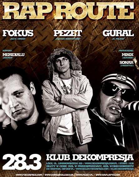 RAP ROUTE to cykl imprez z raperami z czołówki polskiej sceny hip-hop w największych miastach i klubach w Polsce. Druga impreza z tego cyklu odbędzie się 28 marca 2009 w Łodzi w klubie Dekompresja. Wystąpią: MeriDialu, Fokus, Pezet, donGuralesko. Zobacz więcej