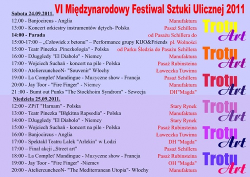Sztuki Ulicznej TrotuArt to festiwal teatralny zlokalizowany w kilku punktach Łodzi: na
