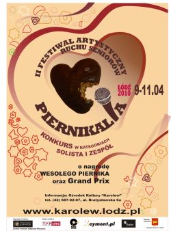 „Piernikalia” to pierwszy i jedyny tego rodzaju Festiwal Artystyczny dla Seniorów w Łodzi i województwie łódzkim.Jego celem jest zaprezentowanie dorobku zespołów artystycznych,chórów, kabaretów i solistów,przede wszystkim stworzenie seniorom możliwości konfrontacji twórczości artystycznej.Programy zaprezentowane podczas „Piernikaliów” oceniane będą wyłącznie przez publiczność.