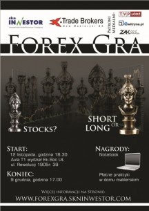 Jesienią, jak co roku, SKN Inwestor przy wsparciu DM X-Trade Brokers organizuje dla studentów projekt FOREX GRA. Mogą w nim wziąć udział zarówno studenci, którzy mieli już do czynienia z inwestowaniem, jak również ci, którzy dopiero próbują swoich sił na tym rynku.