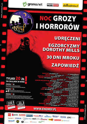 Już wkrótce ENEMEF, czyli Nocny Maraton Filmowy: Noc Grozy i Horrorów w 23 miastach jednocześnie. Tradycyjnie, jak co roku pod koniec października, coś dla miłośników mocnych wrażeń - cztery filmy grozy. Wszystkie weszły na polskie ekrany w ostatnim roku, więc jest to doskonała okazja, aby nadrobić zaległości kinowe - w piątek 30 października.